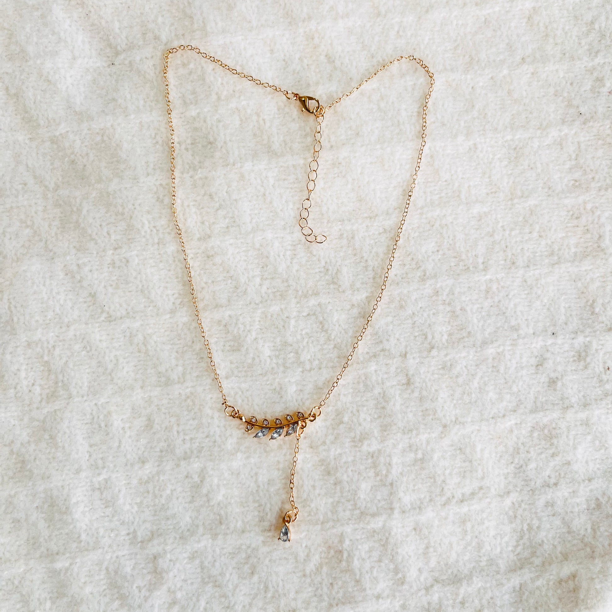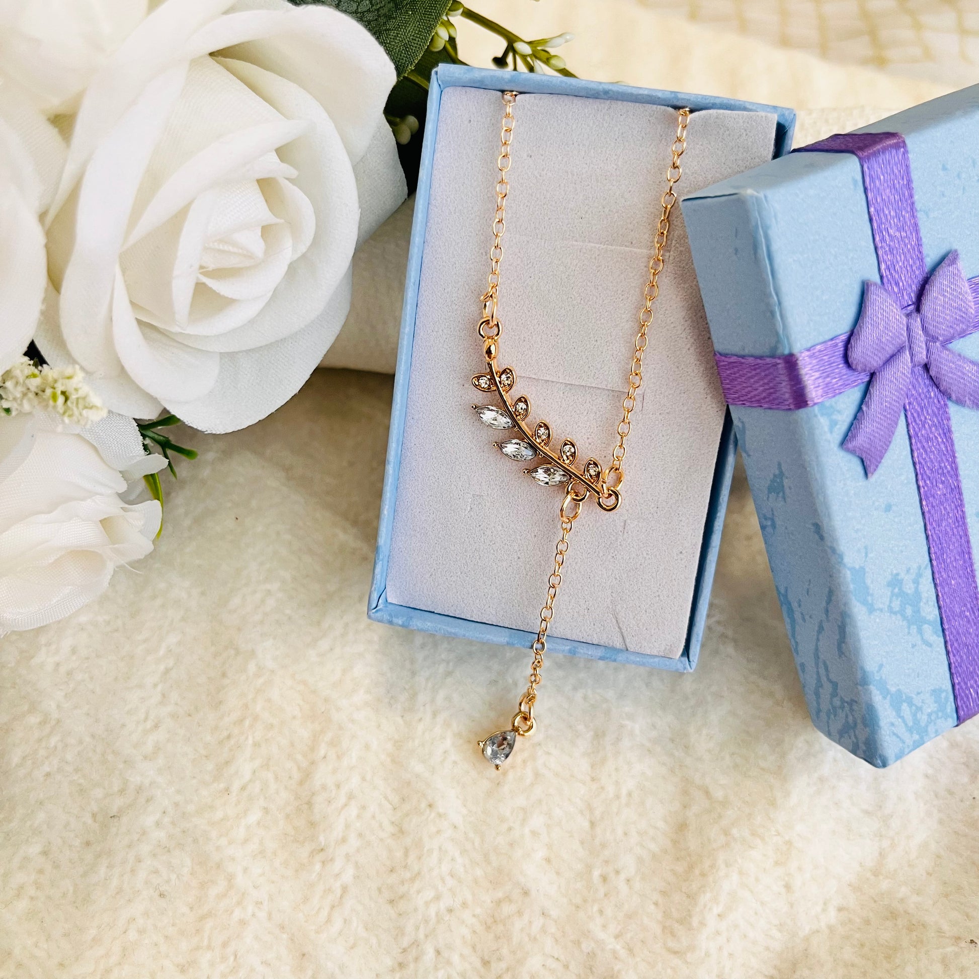 MC2 - Delicate Crystal Leaf Drop Necklace