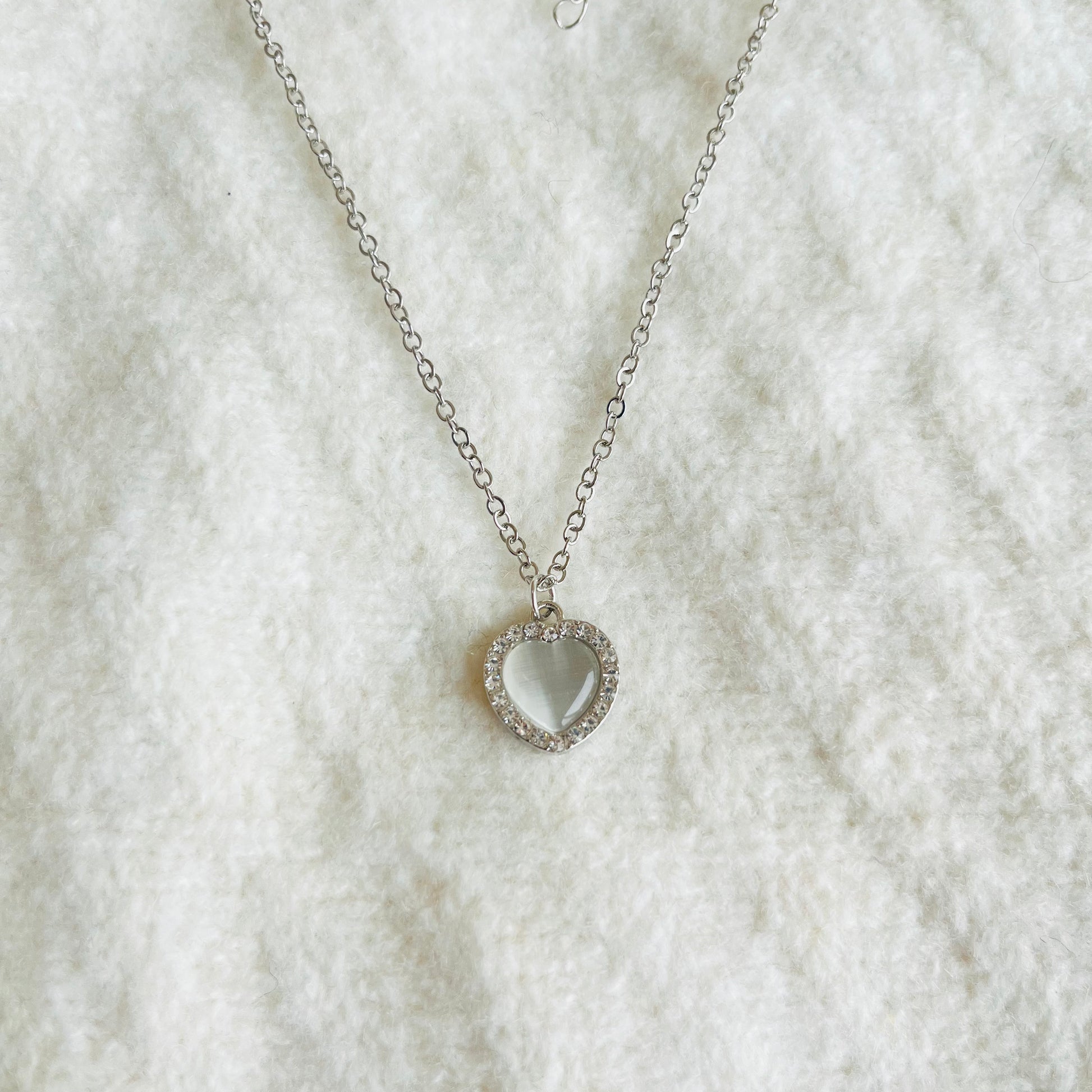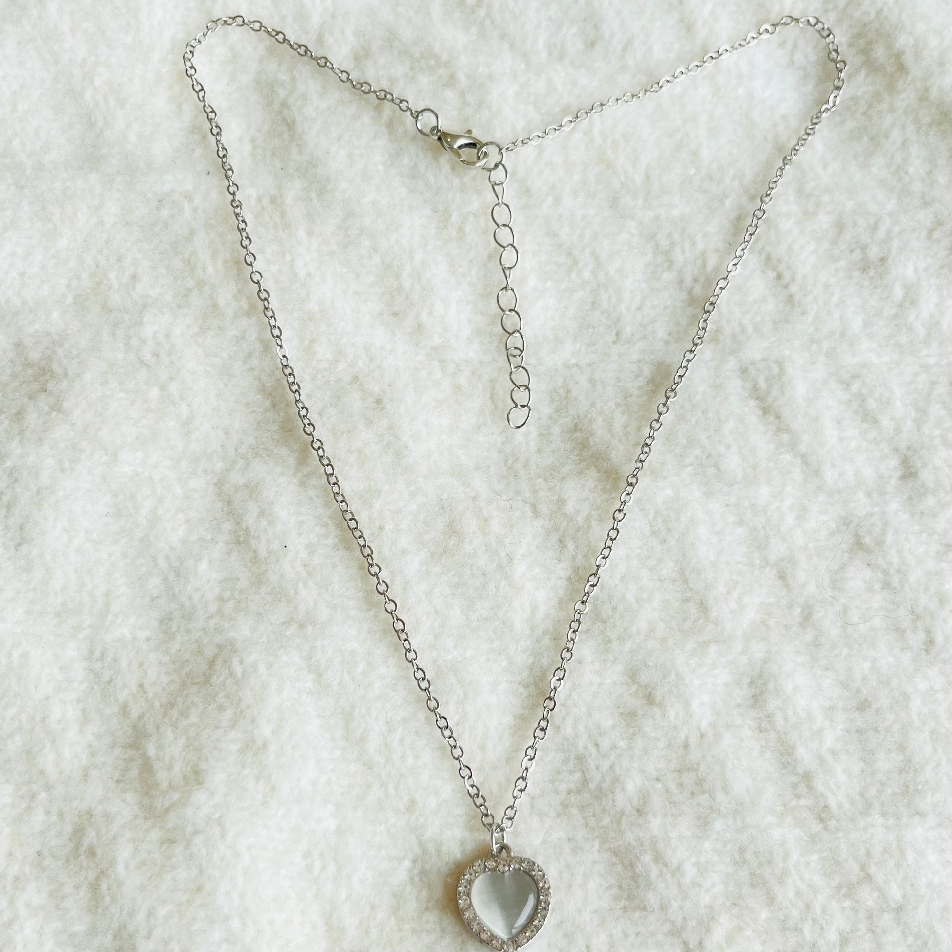Embrace subtle elegance with this beautiful gold-tone necklace featuring a charming heart-shaped opalite pendant. The iridescent glow of the stone is perfectly complemented by its delicate setting, offering a versatile piece that adds a touch of sophistication and romance to any outfit.